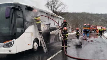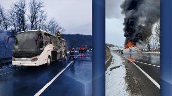 Pe o şosea din judeţul Mureş a luat foc sâmbătă un autocar în...